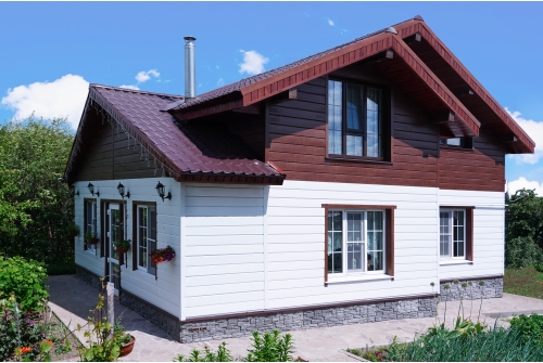 - При использовании покрытия Colority® Print, «ЭкоБрус GL» достигает максимального сходства с клееным брусом. Надежное скрытое сцепление панелей придает фасаду здания естественный вид.