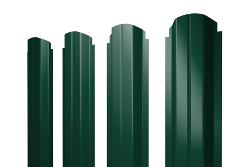 Описание товара: "Штакетник П-образный А фигурный 0,45 Drap RAL 6005 зеленый мох"