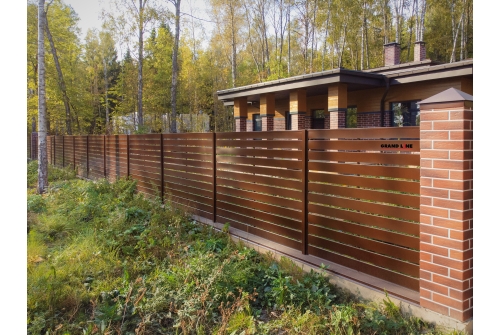 Используя декоративную накладку, ваше ограждение будет выглядеть эстетично, образуя единую цветовую гамму.